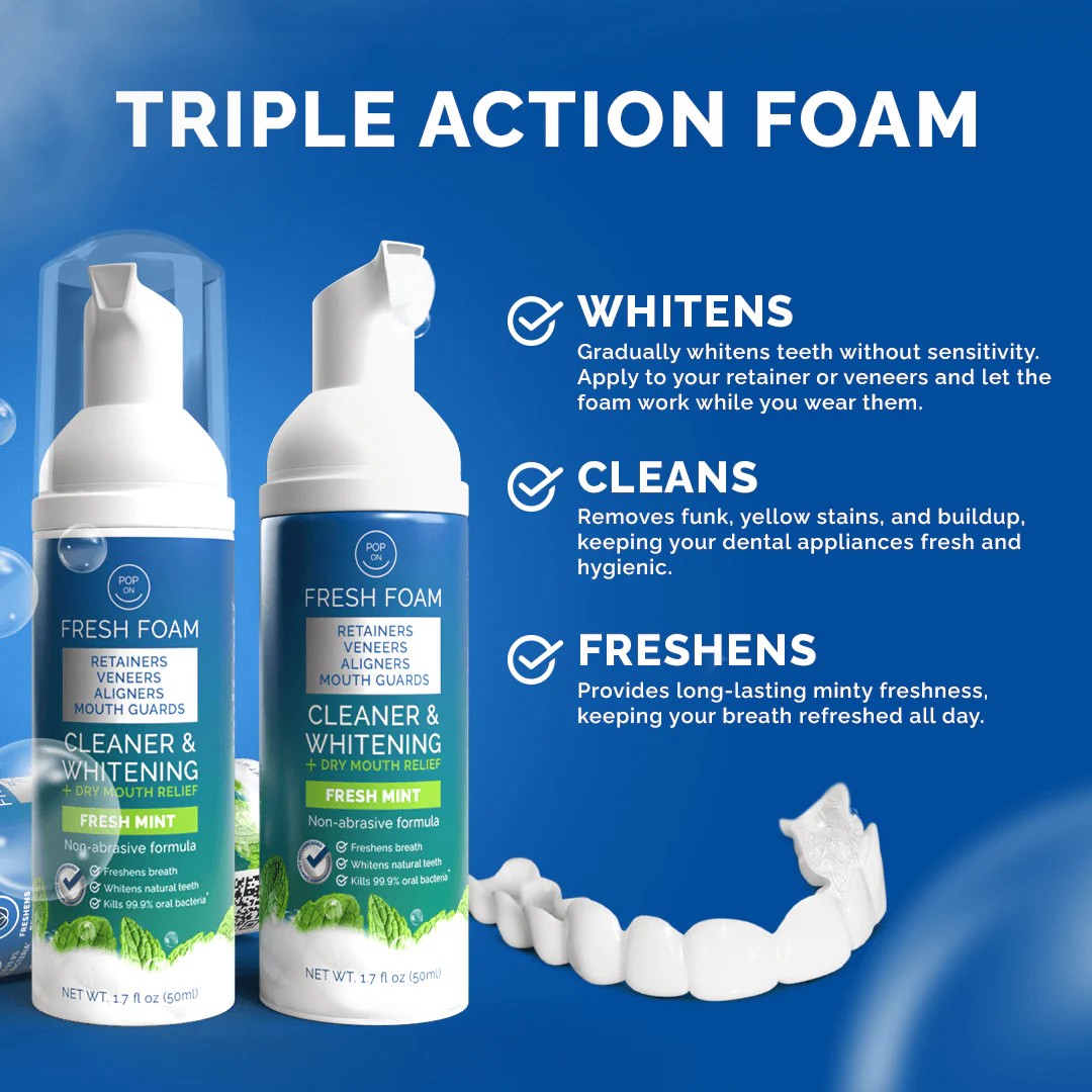 Directions: Apply even layer of Pop On Fresh directly into your Pop On Veneers. Excess foam will dissipate as you pop on your veneers. Now you can love your smile & love feeling FRESH!